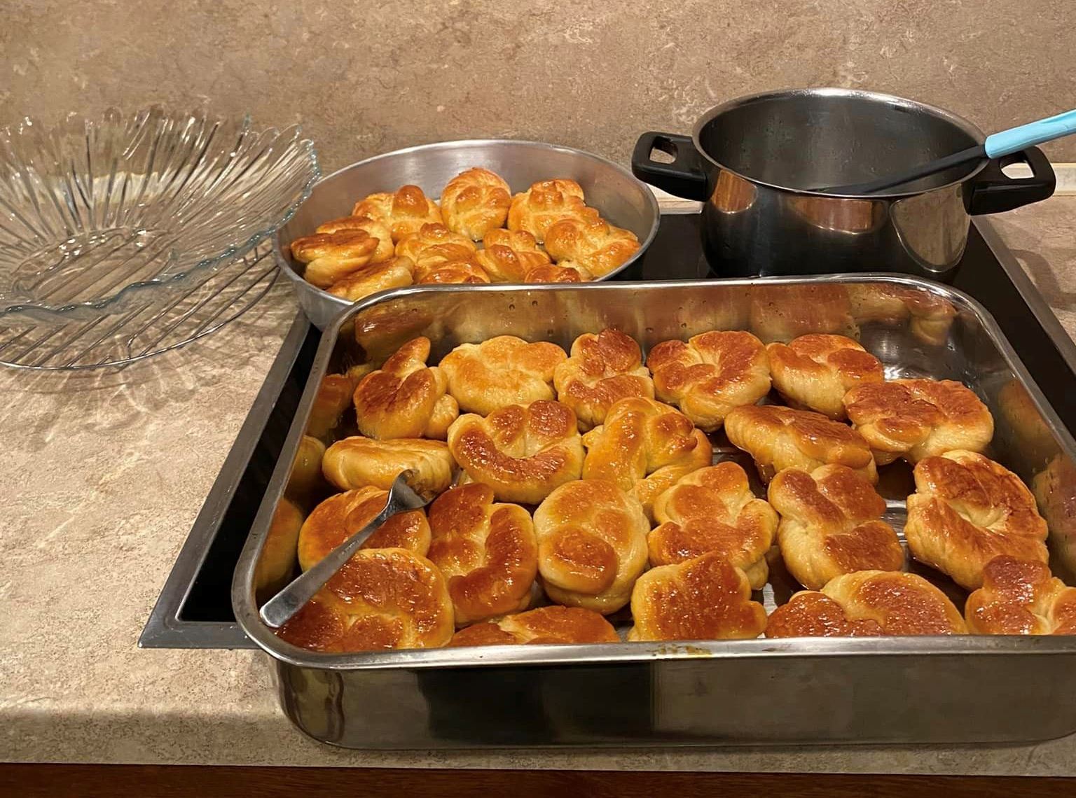 11. Ψήνω τους κόμπους σε προθερμασμένο φούρνο στους 170°C για 25 λεπτά περίπου, μέχρι να ροδίσουν.