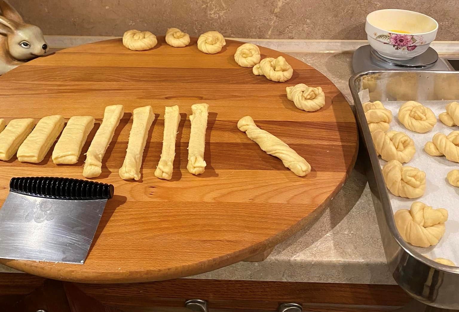 10. Αλείφω τους κόμπους με χτυπημένο αυγό.