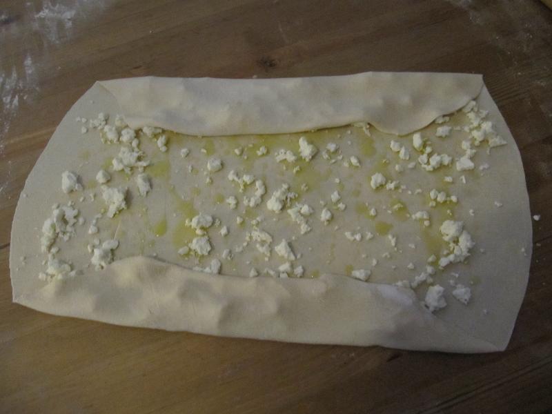 Ρίχνετε λάδι τινάζοντας το σε όλη την επιφάνεια και παίρνετε ένα κομμάτι φέτας και το τρίβετε πάνω στο φύλλο.