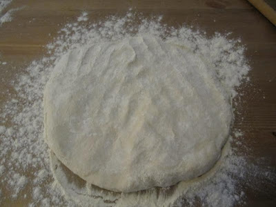 Αρχίζετε να ζυμώνετε το μείγμα ρίχνοντας σταδιακά χλιαρό νερό μέχρι να πάρε μια ζύμη ούτε πολύ μαλακιά, αλλά ούτε και πολύ σκληρή.