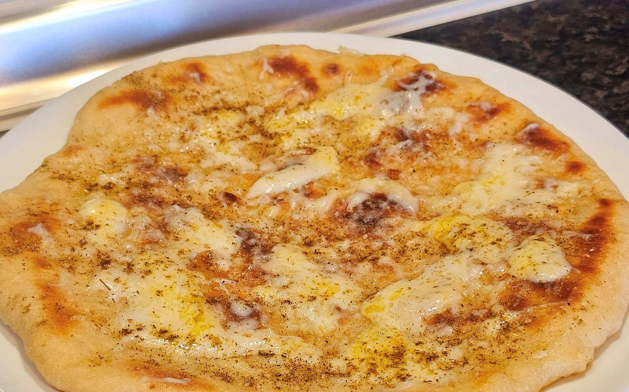 Τέλος, άλειψα το πάνω μέρος γενναιόδωρα με ένα μείγμα από λιωμένο σκόρδο και βούτυρο, πασπαλισμένο με τριμμένο τυρί και έψησα μέχρι να λιώσει το τυρί.