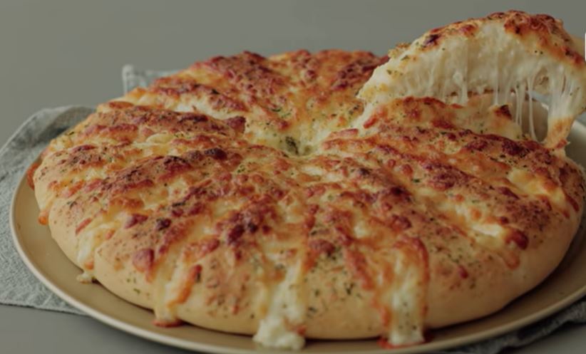 Βάζουμε την κρέμα του σκόρδου πάνω από τη ζύμη και την απλώνουμε αλείφοντάς την σε όλη τη ζύμη χαράζουμε τη ζύμη σε 16 κομμάτια σαν πίτσα και βάζουμε τυρί μοτσαρέλα ενδιάμεσα στις σχισμές και ψήνουμε στους 170 βαθμούς για 18 λεπτά και είναι έτοιμο