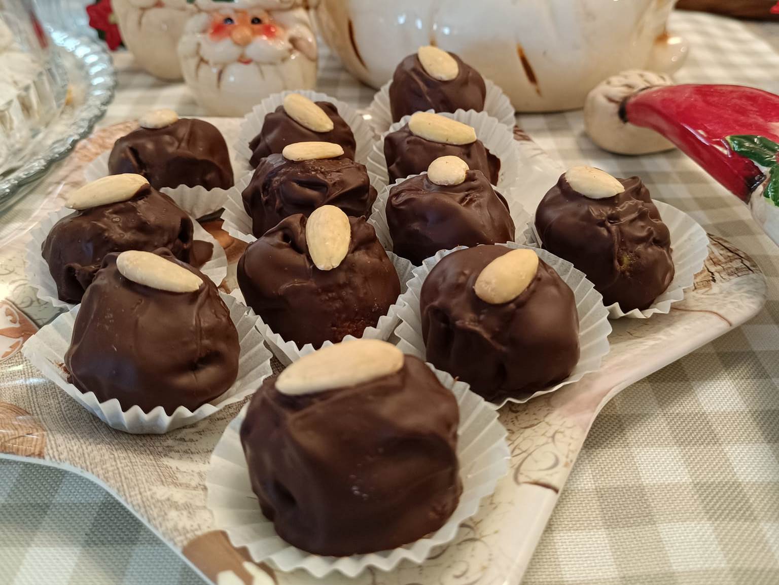 Αλέθουμε τα αμύγδαλα στο μπλέντερ. Βράζουμε τις φλούδες των μανταρινιών ώσπου να λιώνουν με το πηρούνι (μισή ώρα περίπου).Τ’ανακατεύουμε όλα μαζί και τα πλάθουμε μπαλάκια, βρέχοντας τα χέρια μας. Σε μπαιν μαρί λιώνουμε την κουβερτούρα και βουτάμε μέσα με 2 πηρούνια τα σοκολατάκια και ένα ένα τα απλώνουμε πάνω σε αλουμινόχαρτο να στεγνώσουν. Τους βάζουμε πάνω από ασπρισμένο αμύγδαλο και όταν στεγνώσουν, τα βάζουμε στα χαρτάκια.