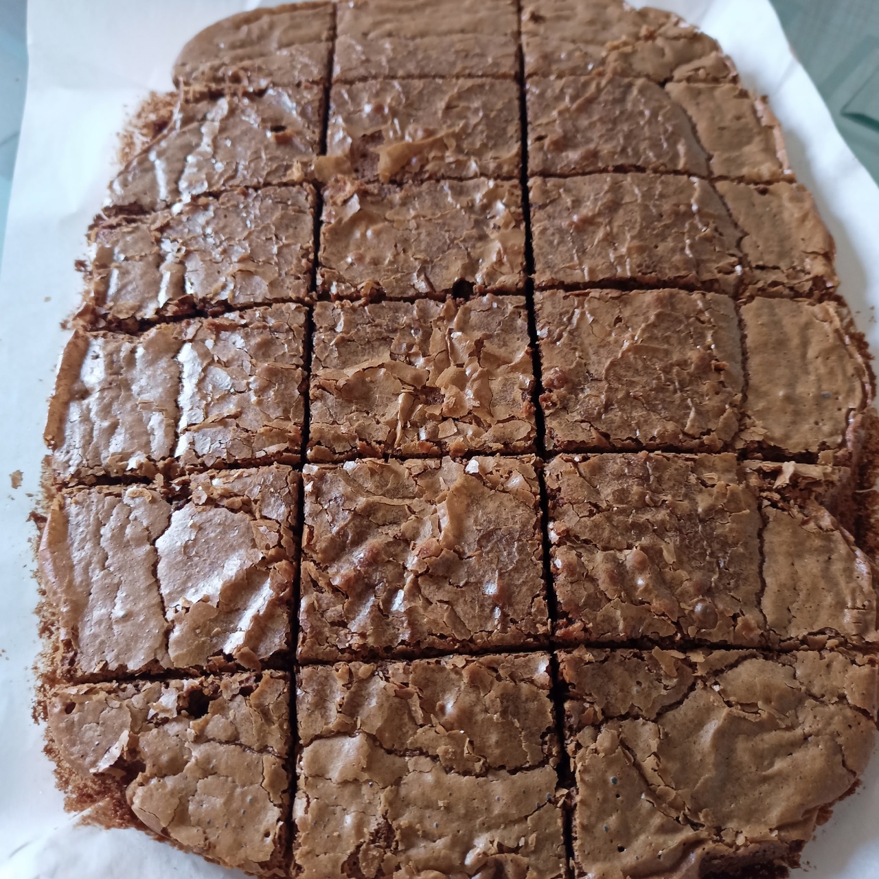 Ο σκοπός είναι ότι η ζύμη να είναι ομοιογενής, αρκετά ρευστή σοκολατένια και λεία. Αδείαζουμε το μείγμα στο ταψάκι και το ισιώνουμε.