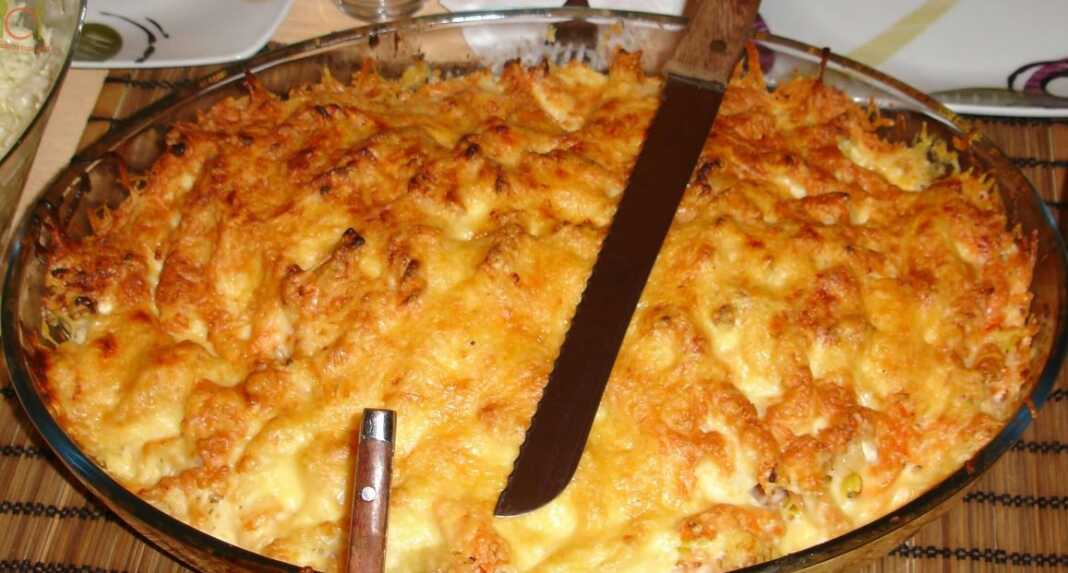 Σουφλέ ζυμαρικών με τυριά και ζαμπόν.