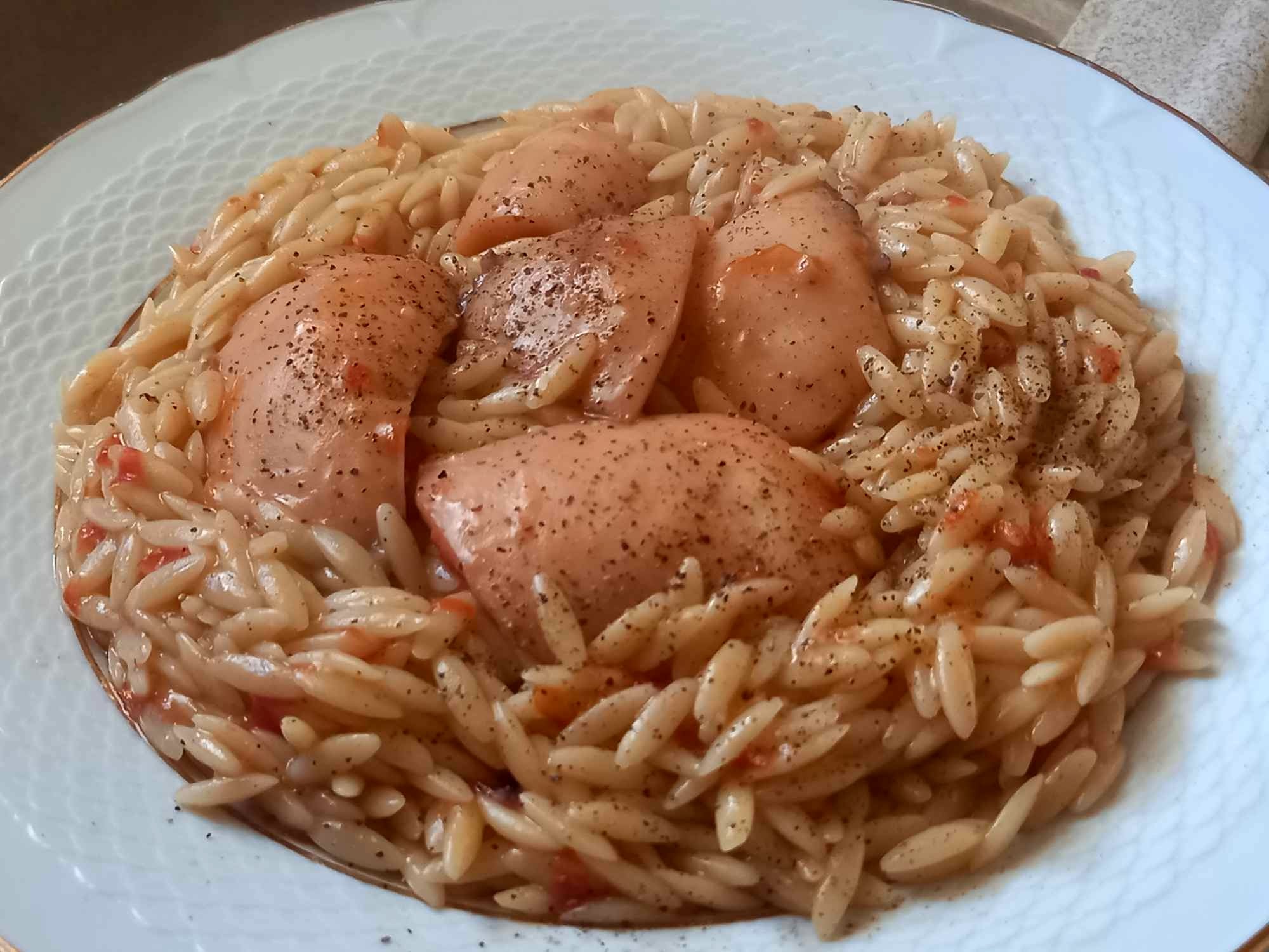 Αυτό το πιάτο είναι ό,τι πρέπει για τους λάτρεις των θαλασσινών και των πλούσιων γεύσεων. Οι σουπιές, μαγειρεμένες σιγά-σιγά σε μια πηχτή σάλτσα ντομάτας, γίνονται τρυφερές και απολαυστικές. Το κριθαράκι, αφράτο και ζουμερό, απορροφάει όλη τη νοστιμιά της σάλτσας, δημιουργώντας ένα ακαταμάχητο πιάτο.