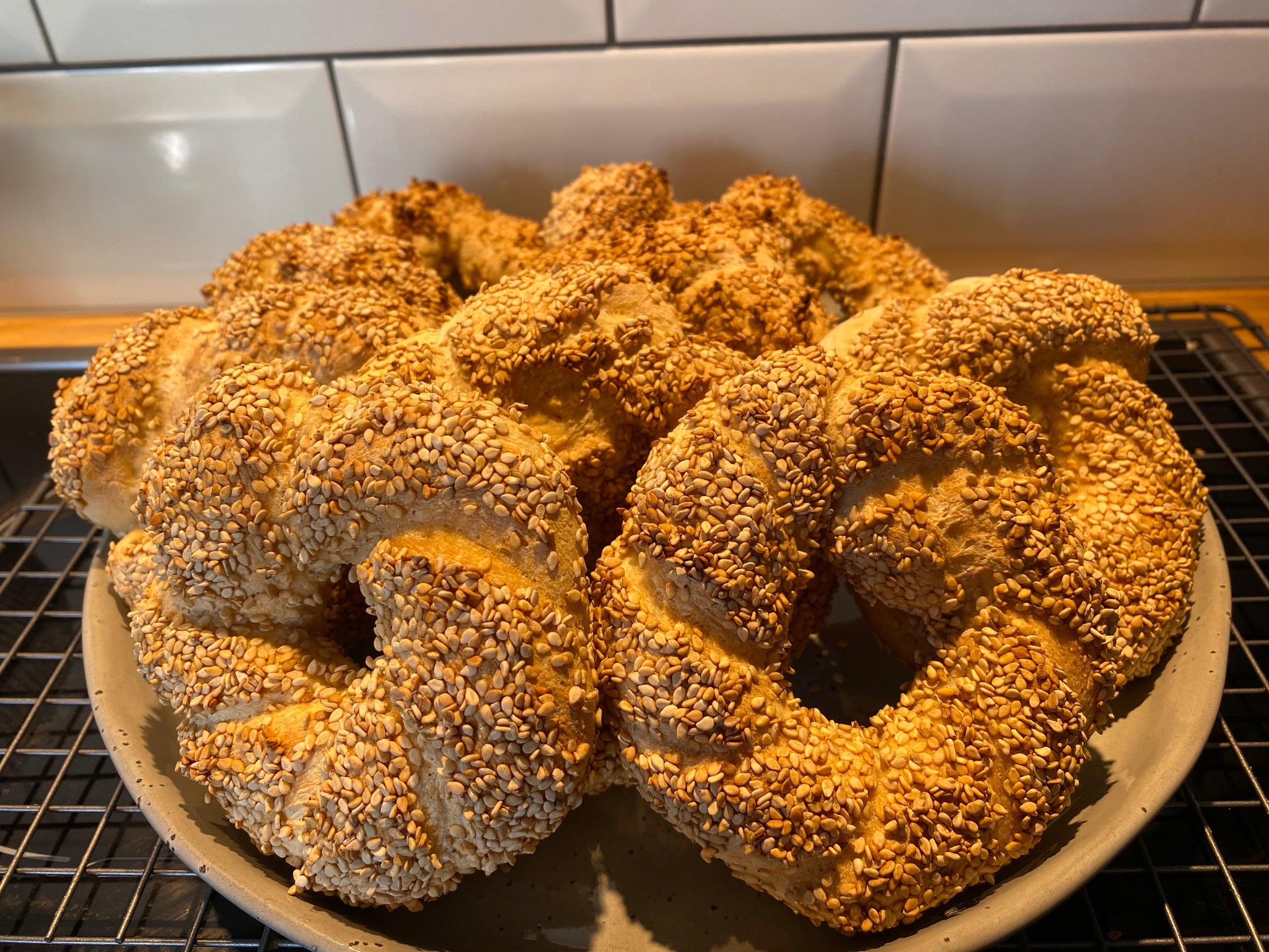 Το κουλουρι πρέπει να βγαίνει λίγο φουσκωμένο, αλλά το χρώμα δεν πρέπει να αλλάξει. Ολόκληρο το μπισκότο πρέπει να έχει ένα υπόλευκο χρώμα, ακόμα και το κάτω μέρος.