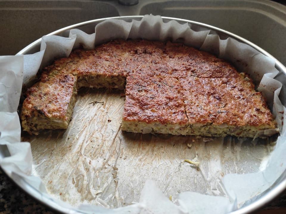 Βάζουμε αντικολλητικό χαρτί στο ταψί μας και ψήνουμε στους 180 βαθμούς σε προθερμασμένο φούρνο για 50- 60 λεπτά μέχρι να ροδίσει η επιφάνεια.