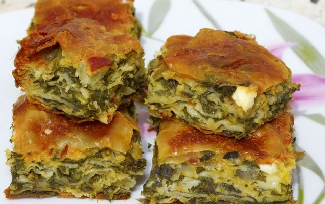 - Από το προηγούμενο βράδυ πλένετε καλά τα λαχανικά και τα απλώνετε σε μία πετσέτα για να μαραθούν. Την επόμενη ημέρα τα ψιλοκόβετε και τα σουρώνετε ώστε να φύγουν τα υγρά τους. Προσθέτετε αλάτι, πιπέρι, δυόσμο. Ανακατεύετε όλα τα υλικά μαζί και στο τέλος προσθέτετε τη φέτα.