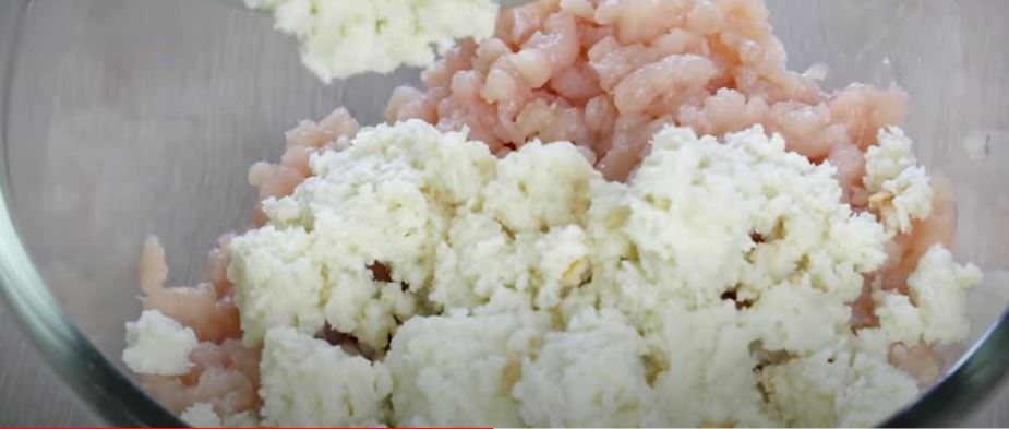Μουσκεύουμε το ψωμί με το γάλα και με ένα πιρούνι το πιέζουμε και το κάνουμε πολτό.