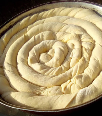 Το στριφουγυρναμε και το τοποθετουμε σε καλα λαδωμενο ταψι!Συνεχιζουμε την ιδια διαδικασια με τα υπολοιπα και τα τοποθετουμε στο ταψι!