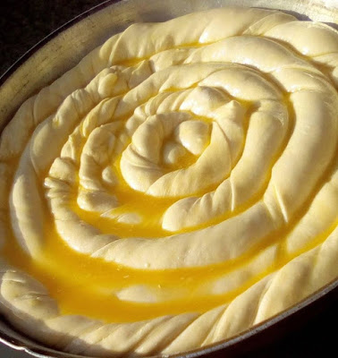 Ριχνουμε σιγα σιγα 200 γραμμαρια αλευρι και ζυμωνουμε θελουμε αφρατη λεια ζυμη!