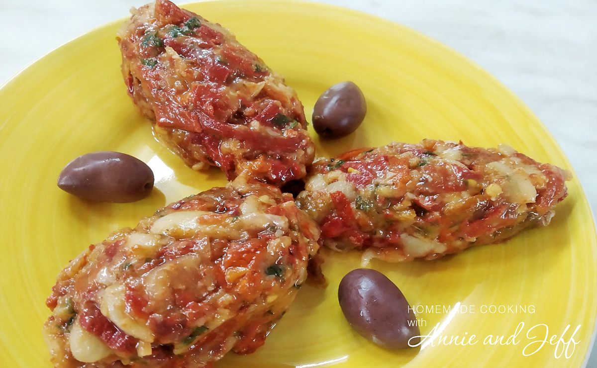 Η ιδέα δεν είναι απλώς να ανακατεύουμε ψητές πιπεριές με μαγειρεμένα φασόλια. Υπάρχουν μερικά κόλπα με τα οποία γίνεται πολύ πιο νόστιμο – πρώτα ψιλοκόβεται, και μετά «τηγανίζεται» με καυτό λάδι.