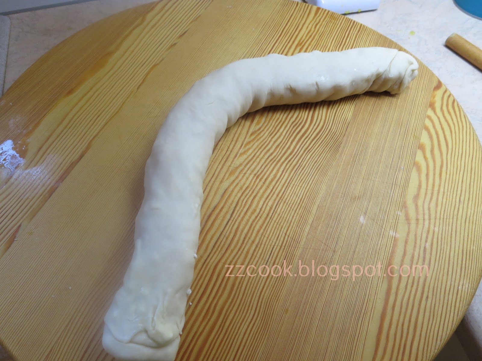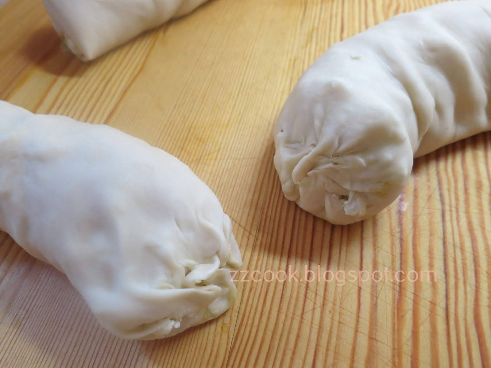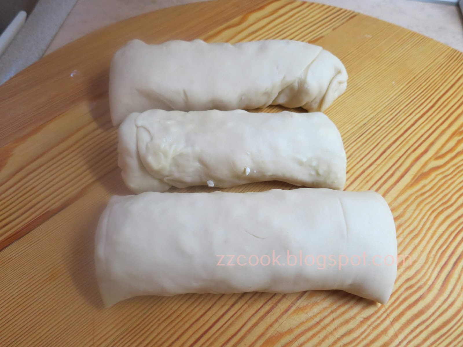 Κλίνουμε τις άκρες και χωρίζουμε τη ζύμη σε 3 μπαστούνια.