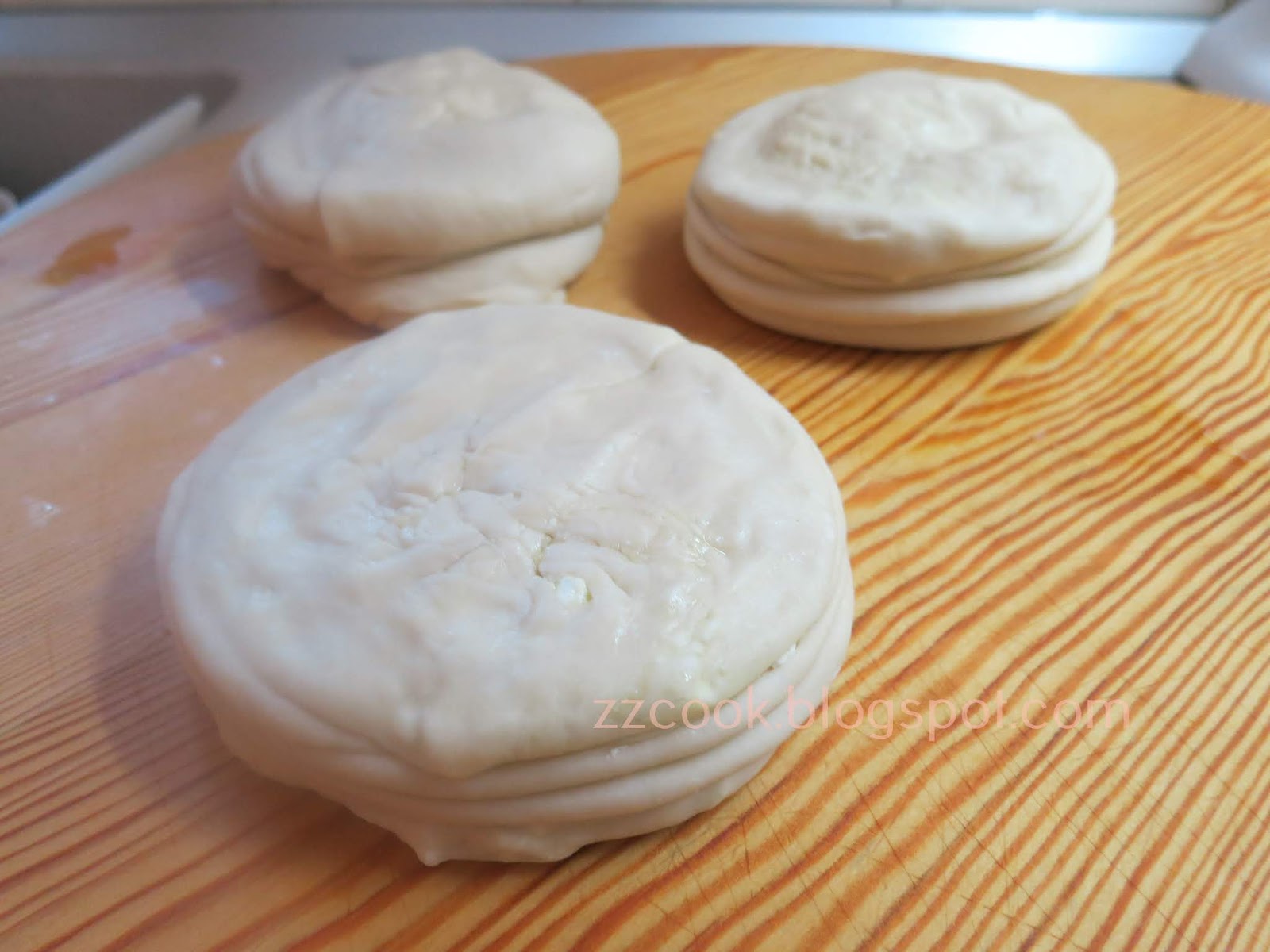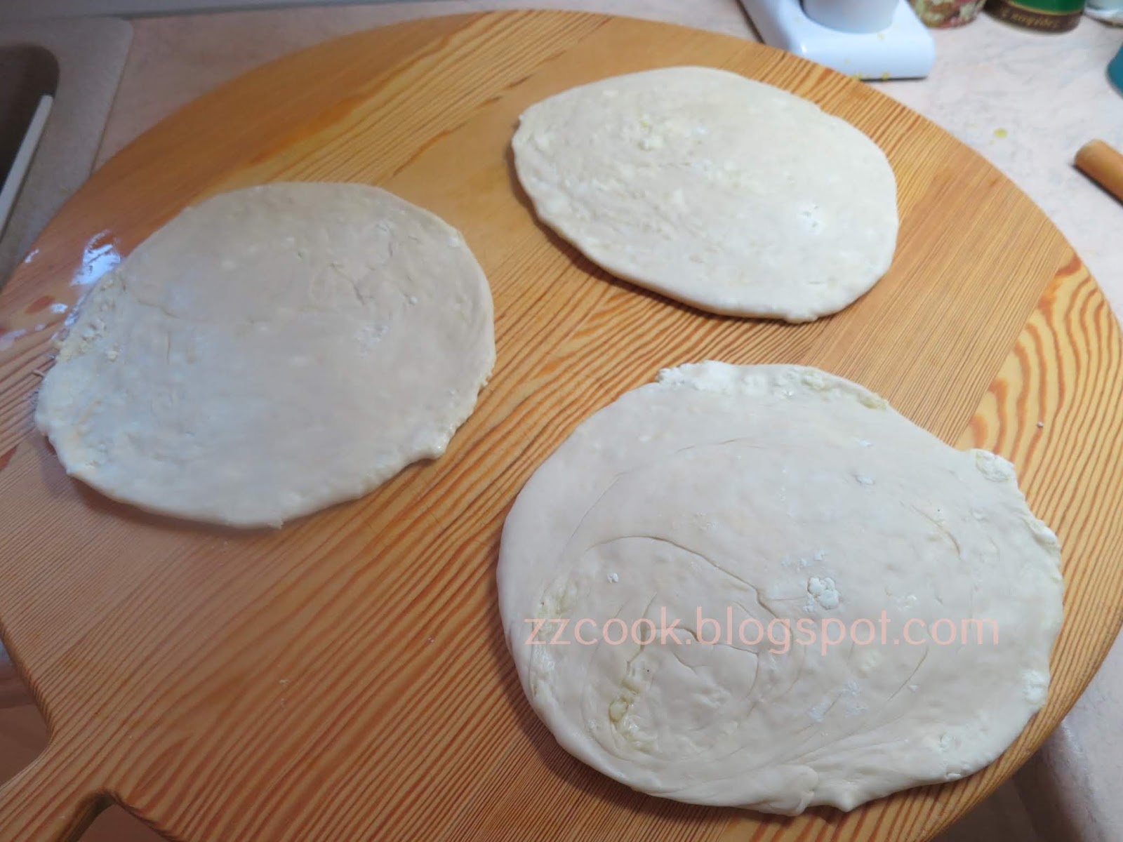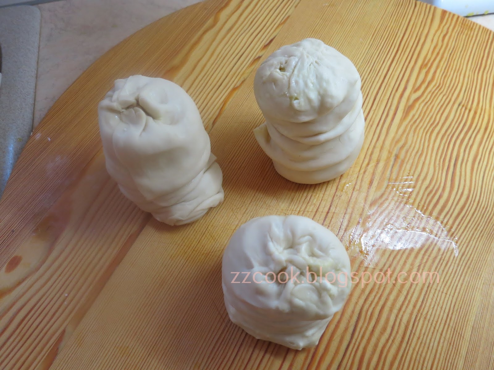 Κλίνουμε τις άκρες και χωρίζουμε τη ζύμη σε 3 μπαστούνια.