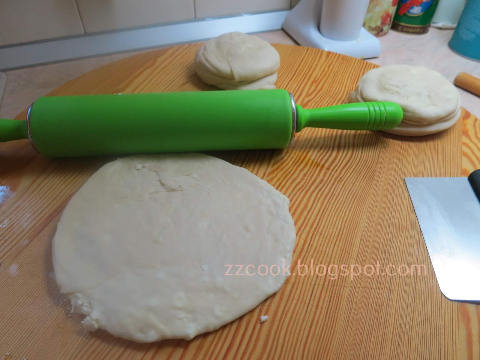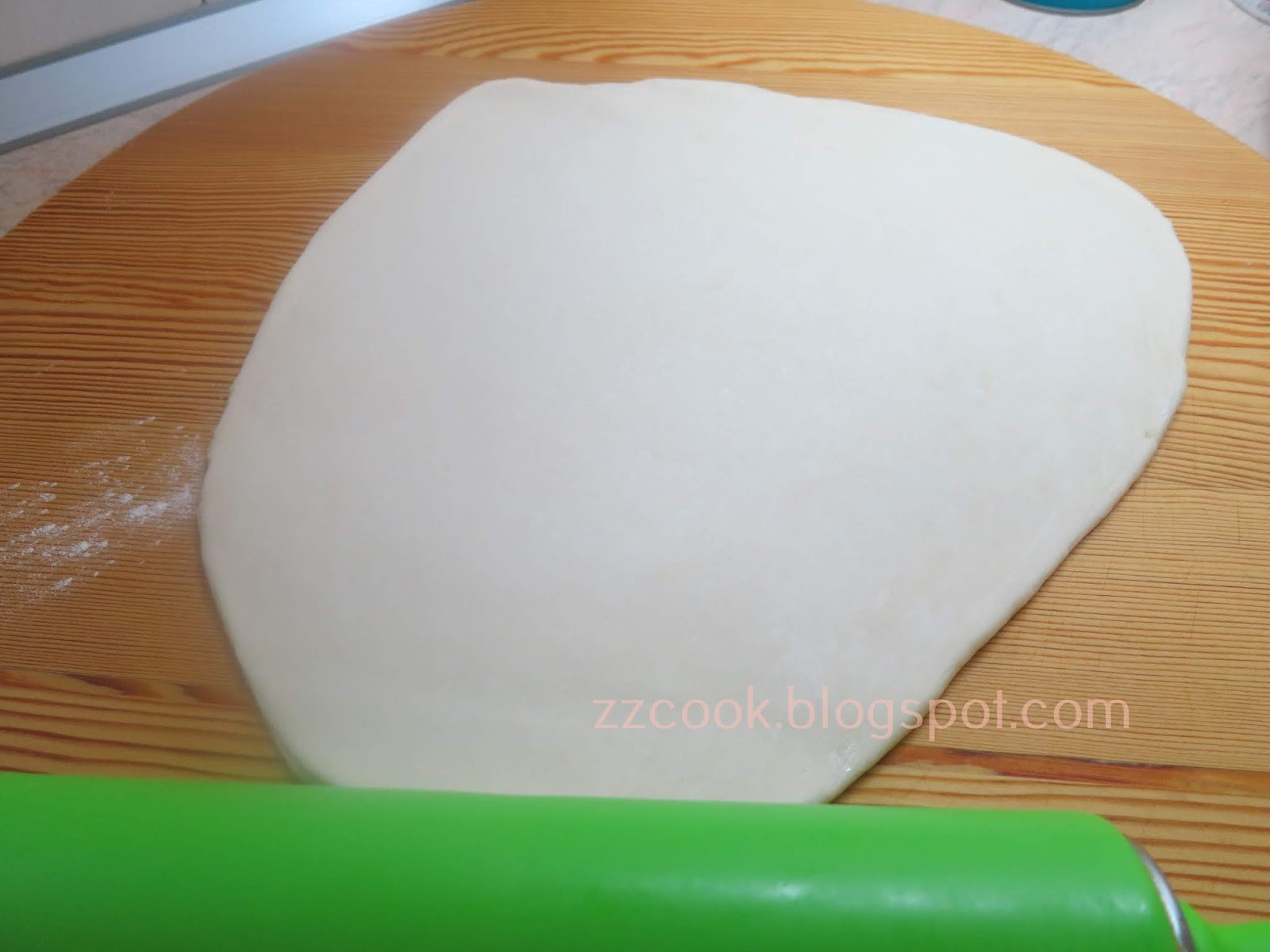 Σκεπάζουμε τη ζύμη 10 λεπτά να απλώσει.