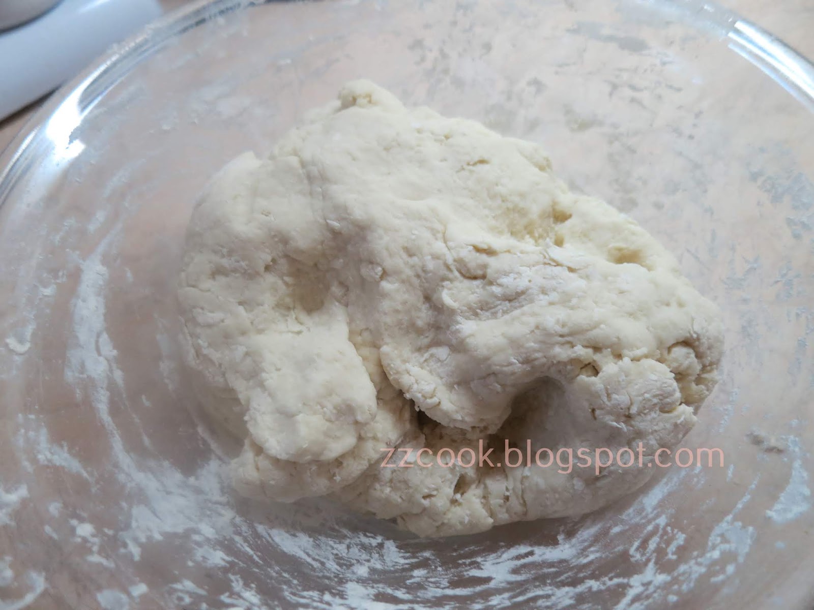 Σε ένα μπολ βάζουμε το αλεύρι προσθέτουμε το μισό ζεστό νερό ζεματάμε το αλεύρι και ανακατεύουμε με ένα ξύλινο κουτάλι, προσθέτουμε και το άλλο μισό, το υπόλοιπο νερό και όλο μαζί ανακατεύοντας ζυμώνουμε 2 λεπτά.