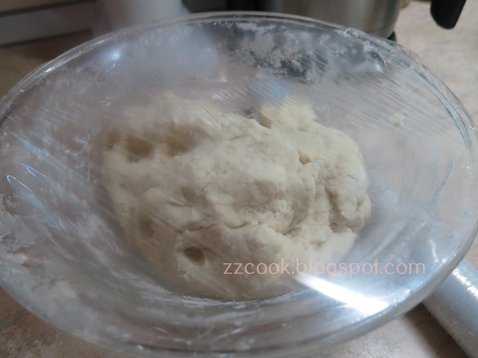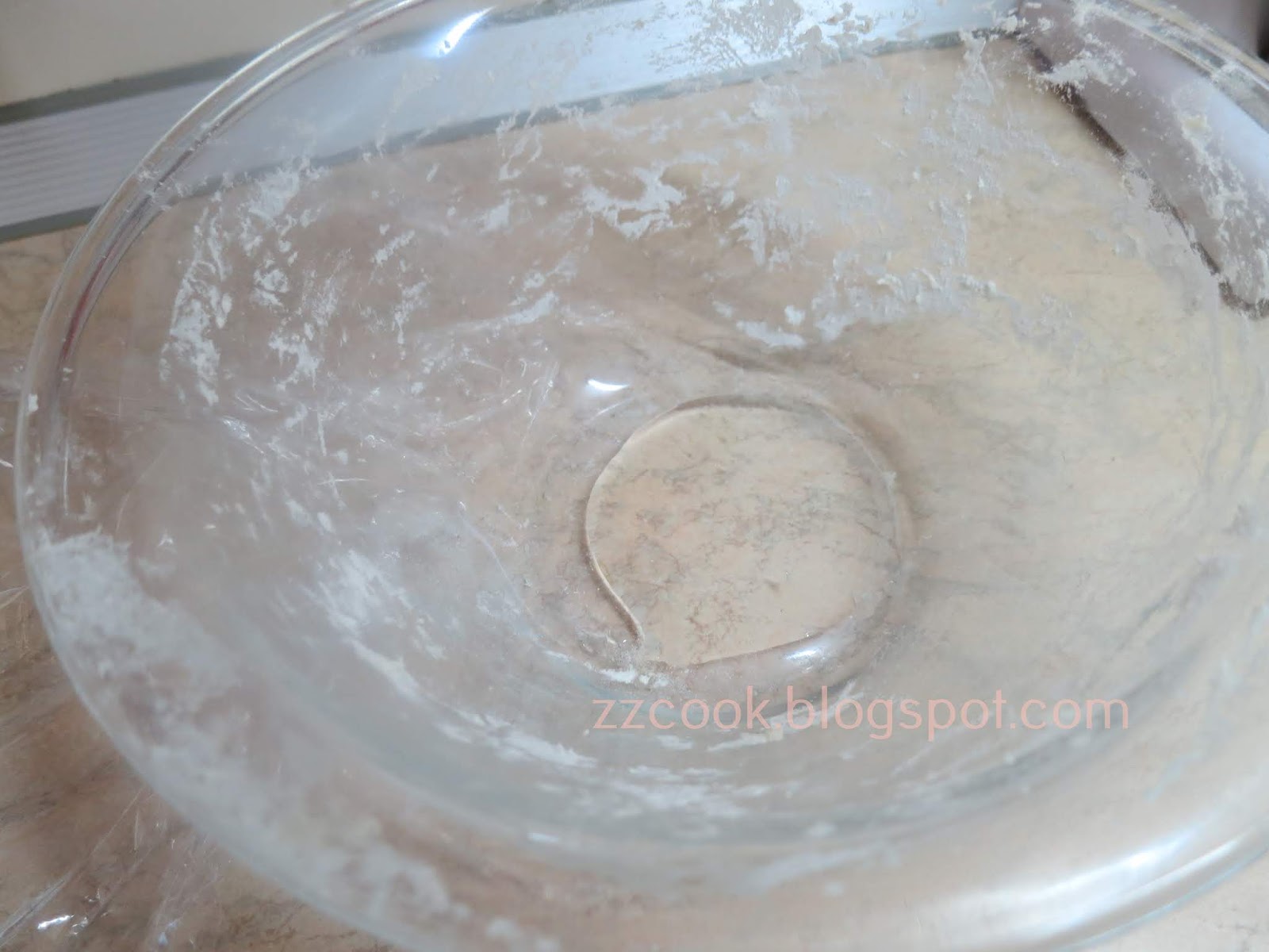 Αφήνουμε να ξεκουραστεί 1 ώρα σκεπασμένη με μεμβράνη.