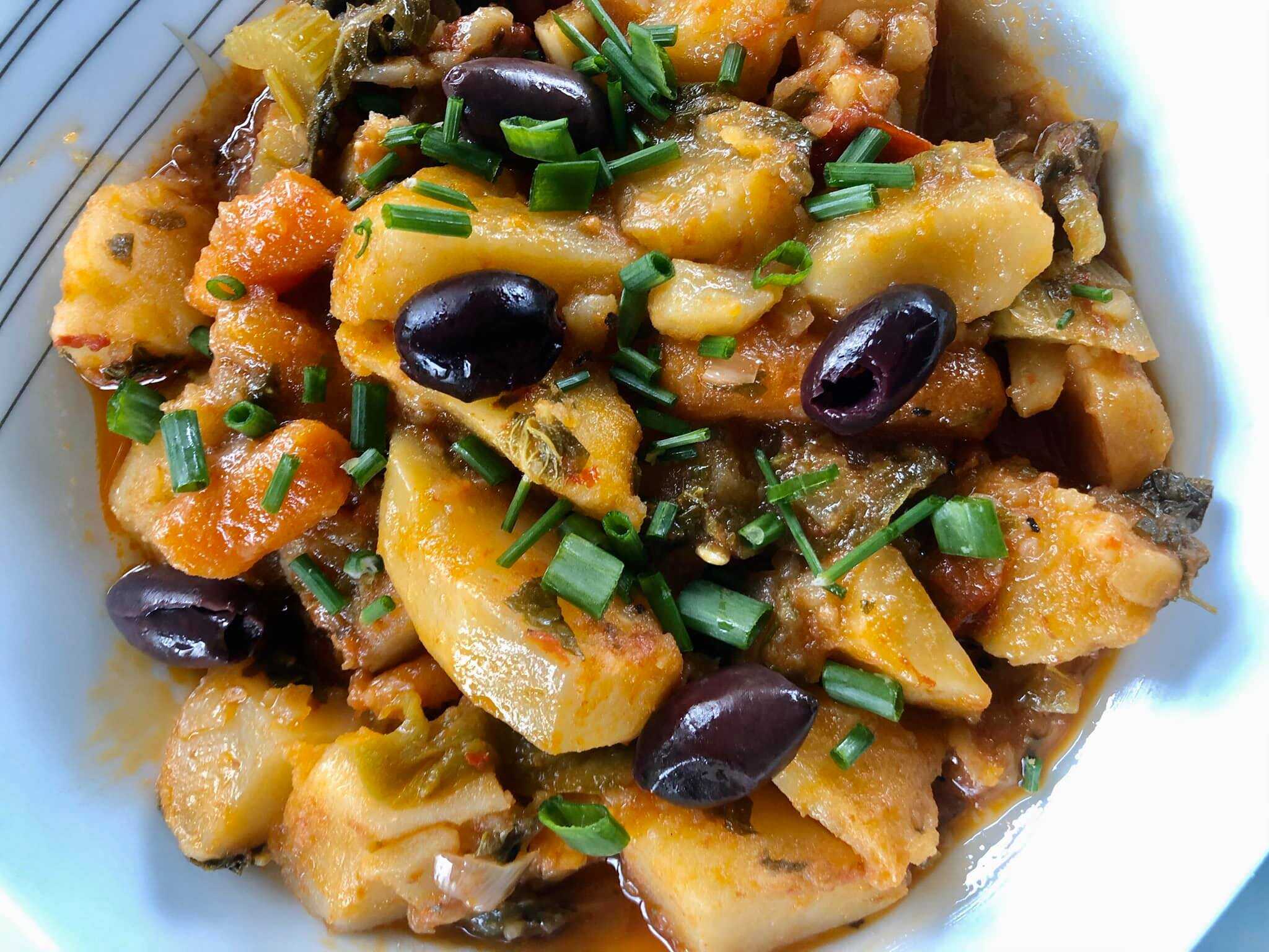 Σερβίρετε περιχυμένο με ελαιόλαδο, με ψωμί φρέσκο και ελιές Καλαμών.
