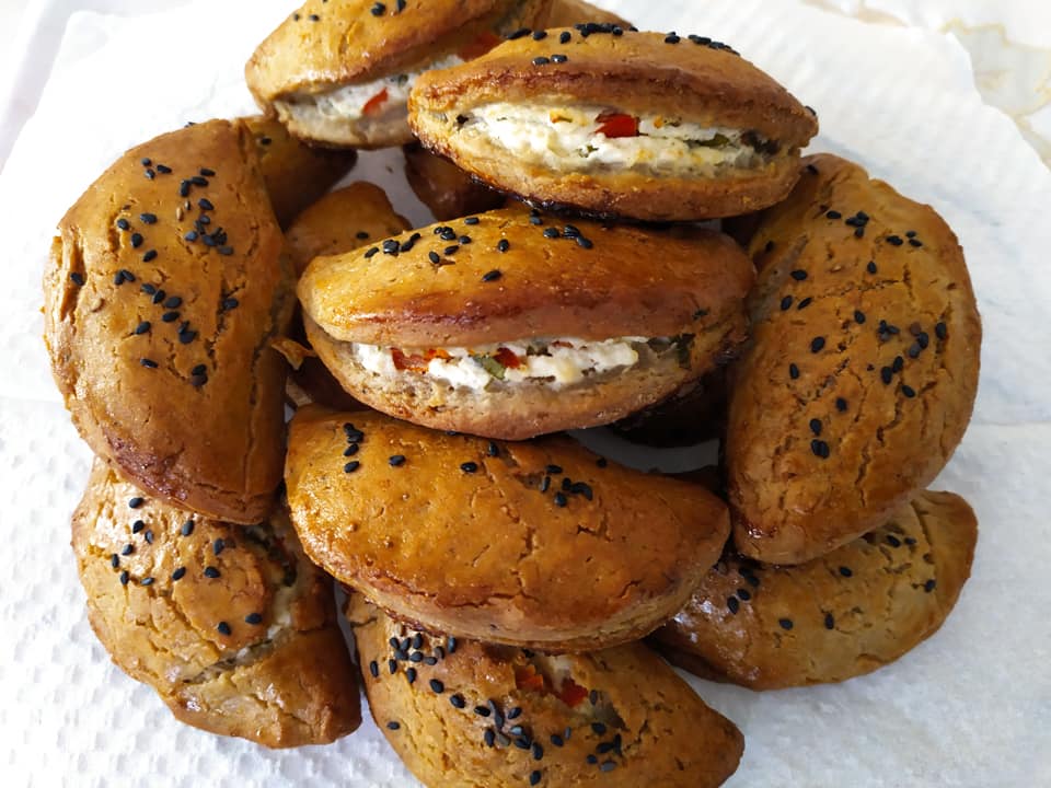 Σημείωση: Από την ίδια ζύμη δοκιμάστε και 4-5 κομμάτια με μαρμελάδα από τριαντάφυλλο (ή ρύζι με κολοκυθάκια). Γίνονται υπέροχα.
