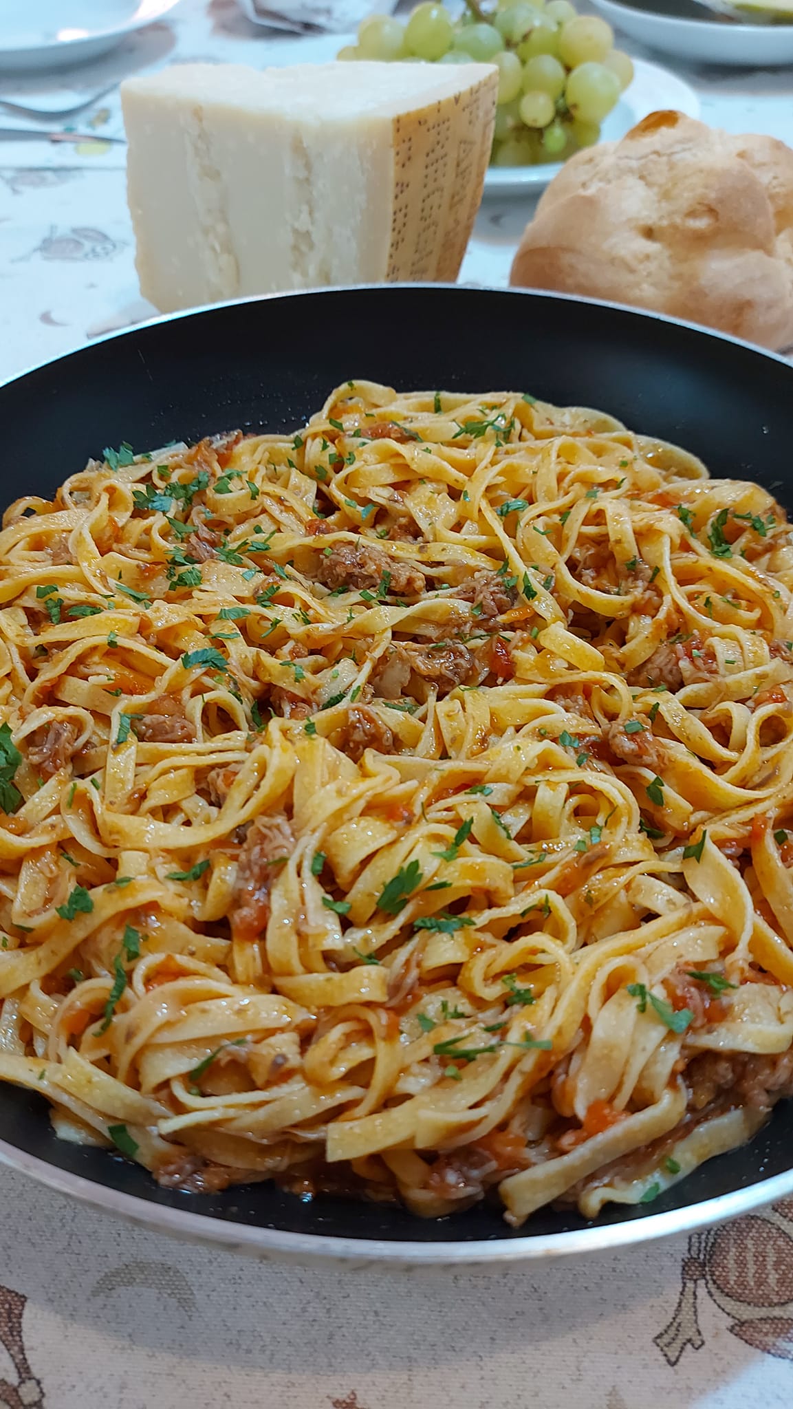 στο τηγάνι. Ανακατεύουμε καλά και πασπαλίζουμε με μαϊντανό. Σερβίρω χωριστά με παρμεζάνα οποιος θέλει να είναι τριμμένη φρέσκια.