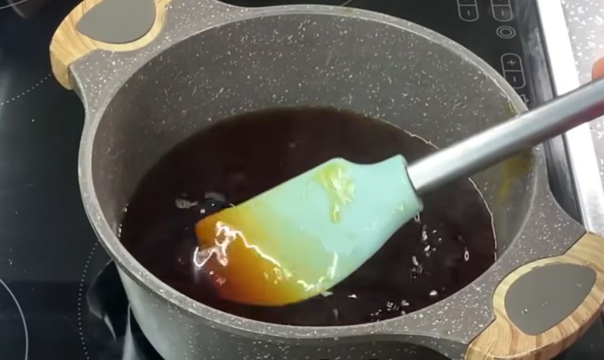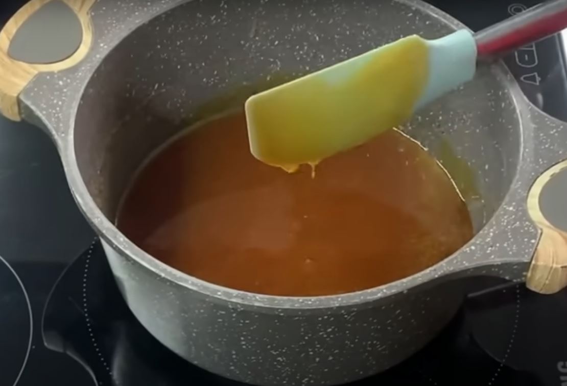 Αρχίζουμε να ανακατευουμε μέχρι να λιωσει η ζάχαρη και να γίνει εντελώς υγρή-ρευστή.
