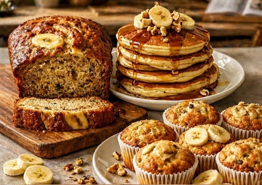 Το πιο συχνό λάθος είναι η χρήση κρύων αυγών και βουτύρου σε συνδυασμό με τον πολτό μπανάνας. Οι μπανάνες έχουν την τάση να κάνουν το μείγμα να “κόβει” αν τα υλικά δεν είναι σε θερμοκρασία δωματίου. Ειδικά στα pancakes και τις τηγανίτες, φροντίστε να μην ανακατεύετε υπερβολικά το μείγμα αφού προσθέσετε το αλεύρι, γιατί η μπανάνα είναι ήδη βαριά και το αποτέλεσμα μπορεί να βγει σφιχτό αντί για αφράτο.