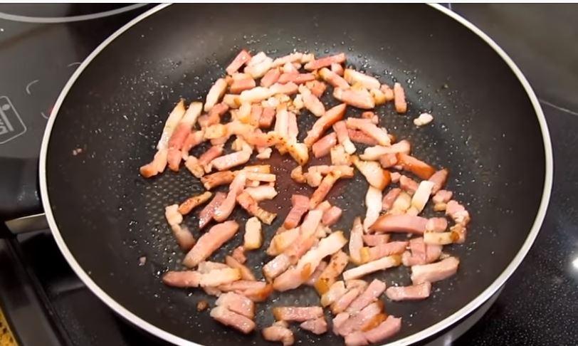 Δεν χρειάζεται να προσθέσουμε λάδι, αλλά με το λίπος μπέικον θα τηγανιστεί.