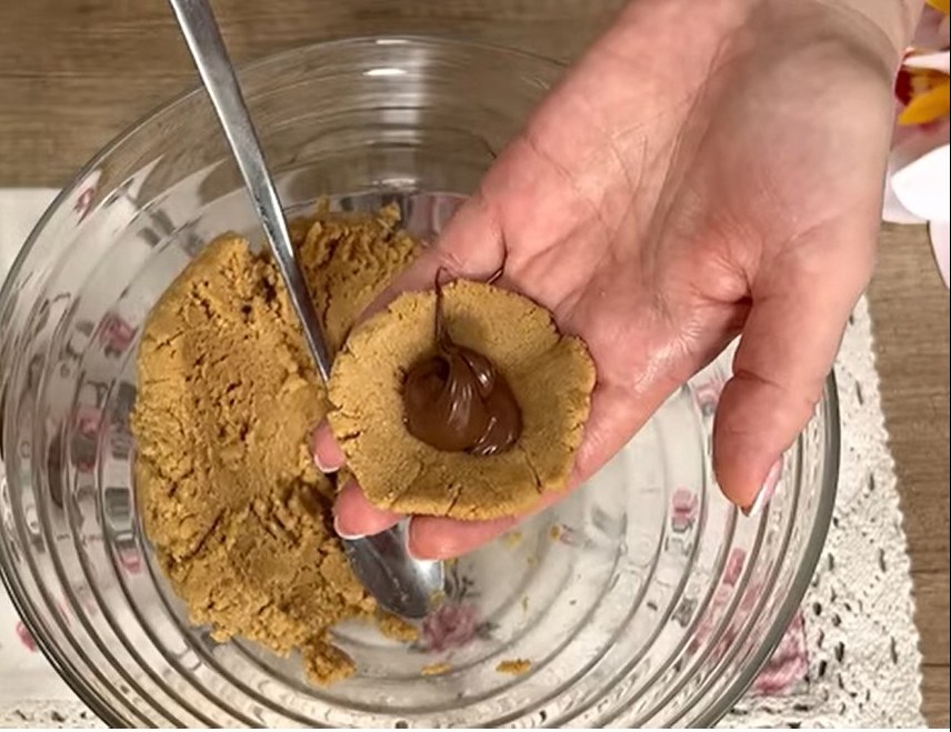 Ισιώνουμε λίγο με τα χέρια μας και μετά γεμίζουμε με Nutella.
