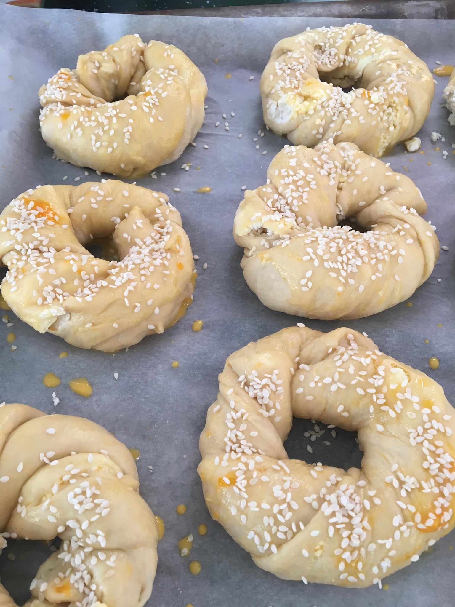 Χτυπάω τον κρόκο με πολύ λίγο νερό και απλώνω στα ήδη φουσκωμένα ατσμά.
