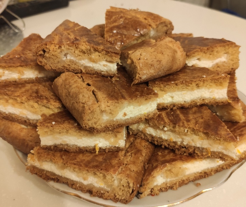 Ανοίξτε στα 2 την ζύμη ανοιξτε σε ορθογώνιο σχήμα σε ένα ταψί με λαδόκολλα.