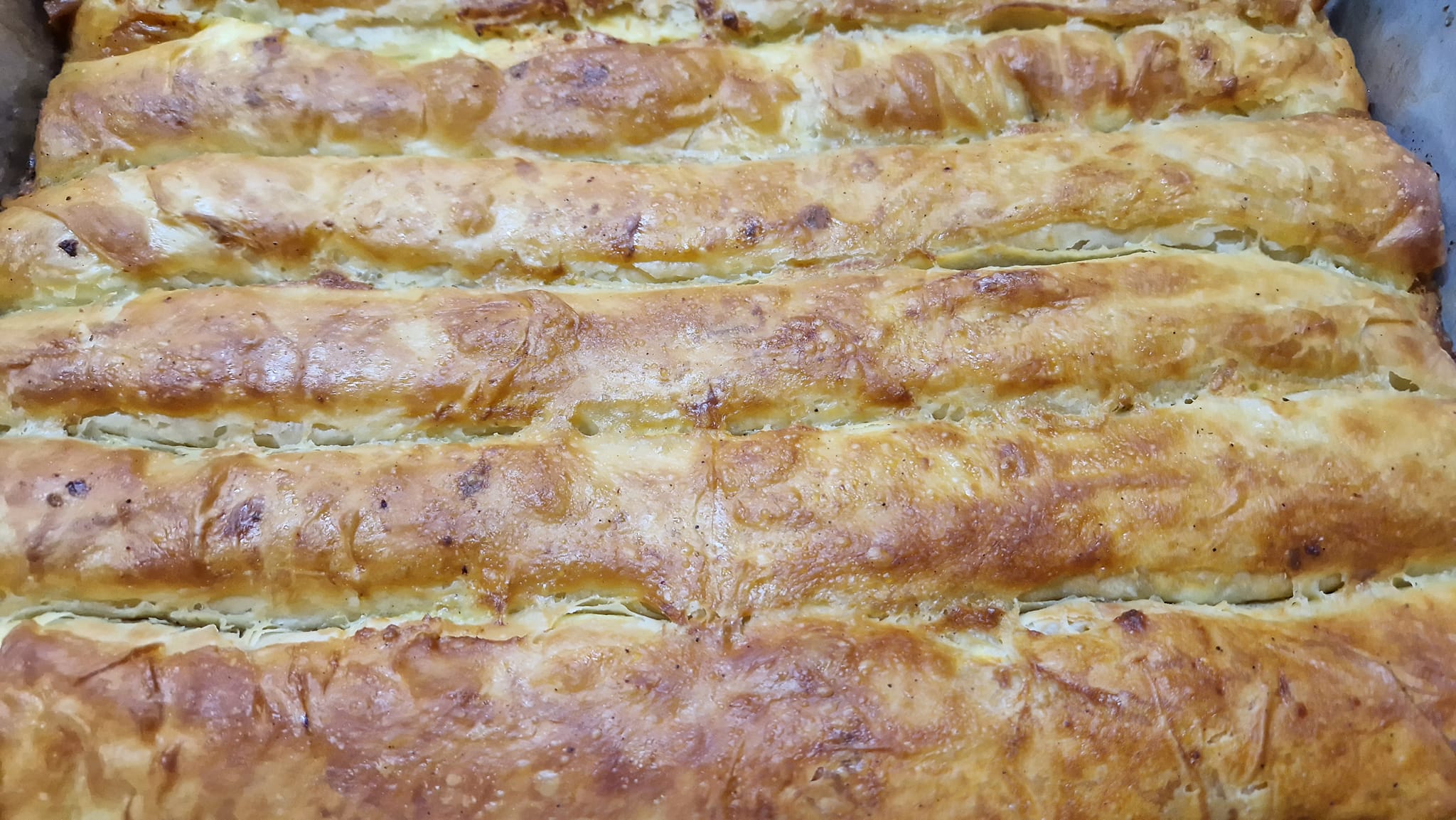 - Τραγανή υφή: Το χειροποίητο φύλλο ψήνεται ομοιόμορφα, δημιουργώντας μια τραγανή υφή που συμπληρώνει ιδανικά την πλούσια γέμιση.