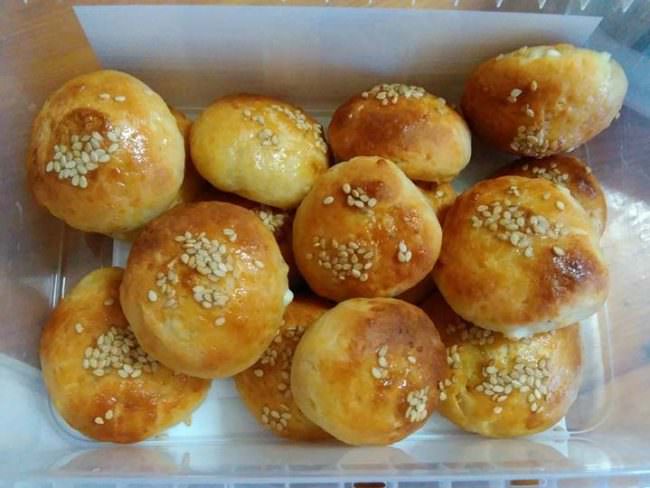 Χτυπάμε ένα αυγό και αλείφουμε το κάθε τυροπιτάκι και τα πασπαλίζουμε με λίγο σησάμι στην λακουβίτσα….
