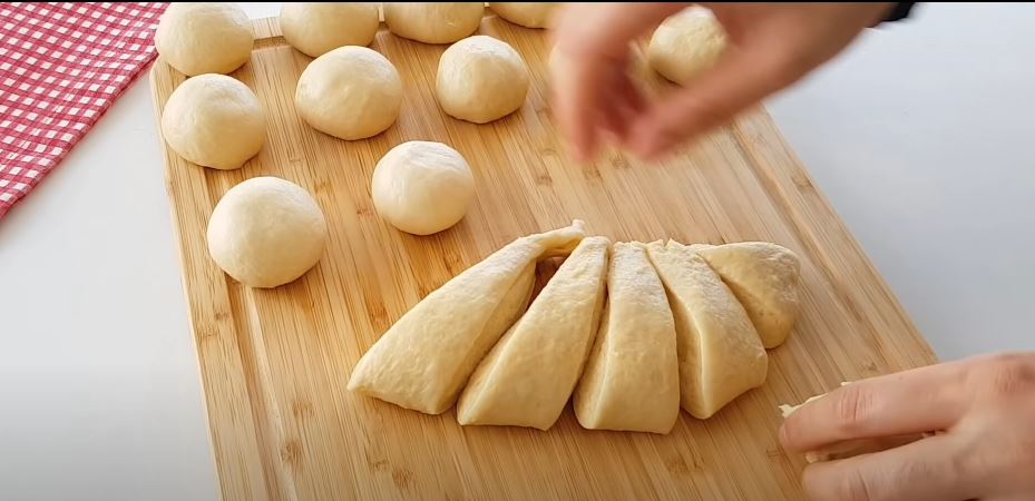 Μοιράζουμε την ζύμη σε 12 μέρη και φτιάχνουμε 12 μπαλες ζύμης