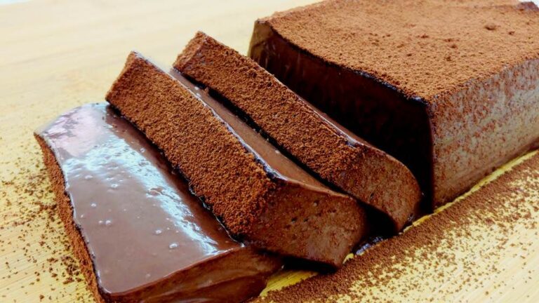 Αφήστε να κρυώσει για λίγα λεπτά και βάζετε στο ψυγείο 6 ώρες ή περισσότερο. Αφαιρέστε το από το καλούπι και πασπαλίστε με κακάο σε σκόνη καλής ποιότητας. Χρησιμοποιήστε ένα ζεστό μαχαίρι κοψτε και σερβίρετε!