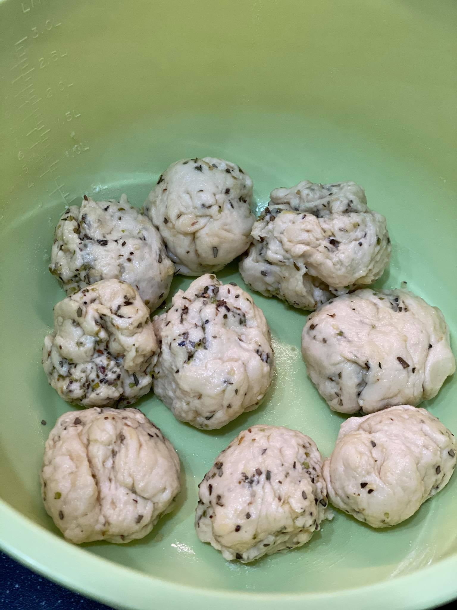 Από τη ζύμη που έχει ήδη ξεκουραστεί σχηματίζονται μπάλες όσο και τα καρύδια.
