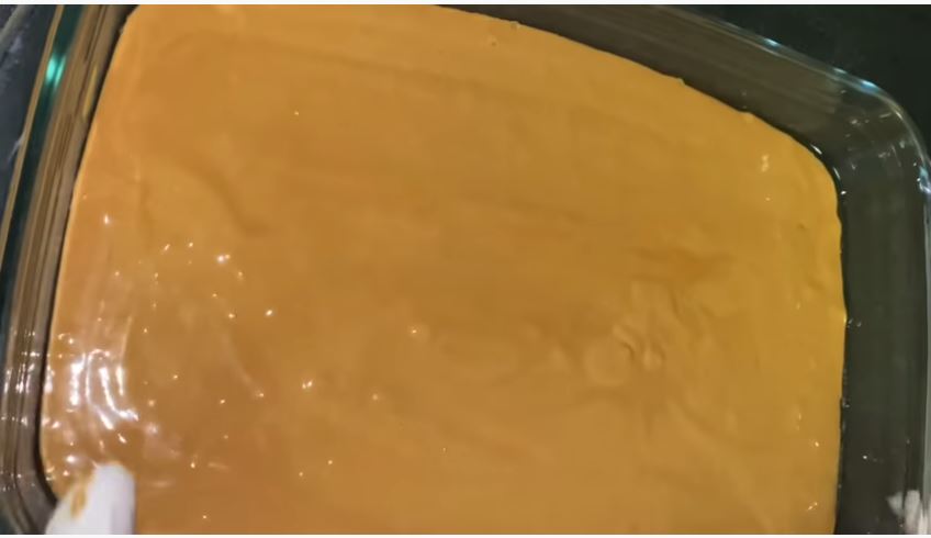 Λαδώνουμε ελαφρώς την βάση ενός πυρέξ και αδειάζουμε το μείγμα.