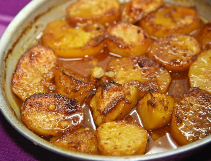- Για ακόμα πιο νόστιμες πατάτες φούρνου βράστε τις νωρίτερα (5 λεπτά πριν τις βάλετε στο ταψί) με κρεμμύδι και ζωμό βοδινού (από κύβο μαγειρικής). Διαβάστε παρακάτω…