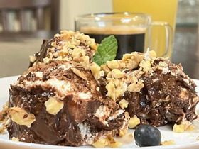 Αν δεν θέλετε να βάλετε καρύδια, μπορείτε να γαρνίρετε το γλυκό με τρούφα σοκολάτας, ξύσμα κουβερτούρας ή φρέσκα κεράσια (ανάλογα την εποχή).