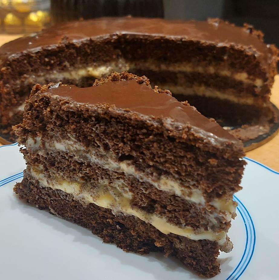 Για να κόψετε το παντεσπάνι σε ίσους δίσκους, χρησιμοποιήστε ένα μεγάλο οδοντωτό μαχαίρι. Πριν το κόψετε, αφήστε το να κρυώσει καλά. Η Τούρτα με Κρέμα και Επικάλυψη Σοκολάτας χρειάζεται το χρόνο της στο ψυγείο για να δέσει.