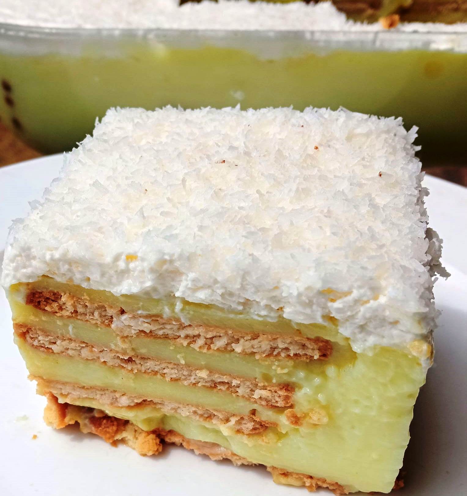 Αφού κρυώσει βάζουμε την σαντιγύ πάνω και τέλος μπόλικη καρύδα!