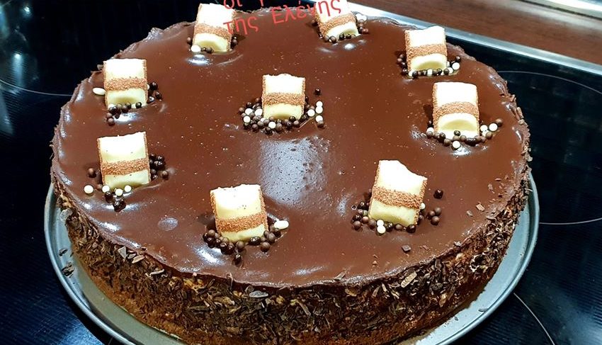 Την Ρίχνουμε πάνω στη βάση μπισκότου και το βάζουμε στο ψυγείο να κρυώσει.