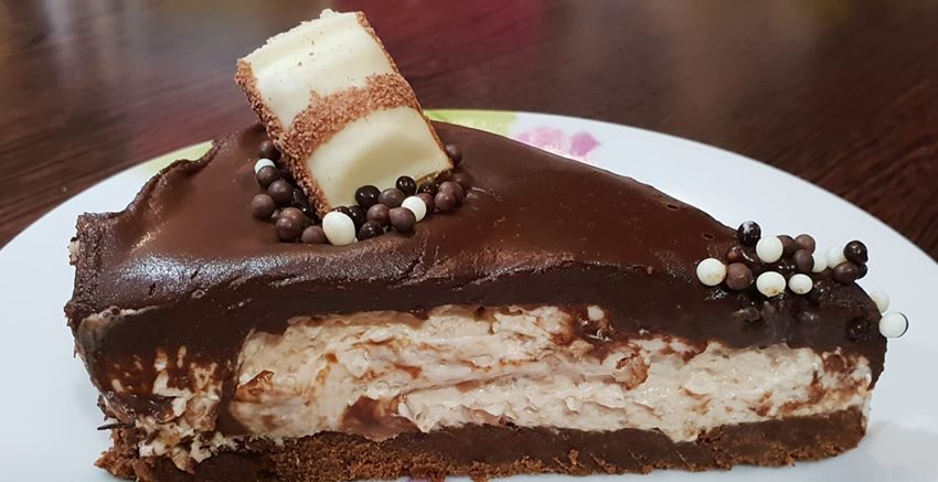Για το γκανας σοκολάτας:Βάζουμε σε κατσαρόλα, σε χαμηλή θερμοκρασία τη κομματιασμένη σοκολάτα και προσθέτουμε και τη κρέμα γάλακτος. Αφήνουμε τη σοκολάτα να λιώσει σιγά σιγα ανακατεύοντας πότε πότε. Μόλις είναι έτοιμο το αφήνουμε λίγο να κρυώσει και μετά περιχύνουμε το γλυκό μας.. Κόβουμε σε κομματάκια τις 2 υπόλοιπες μπάρες Kinder Bueno γαρνίρουμε και το βάζουμε πάλι στο ψυγείο να κρυώσει για τουλάχιστον 2-3 ώρες….