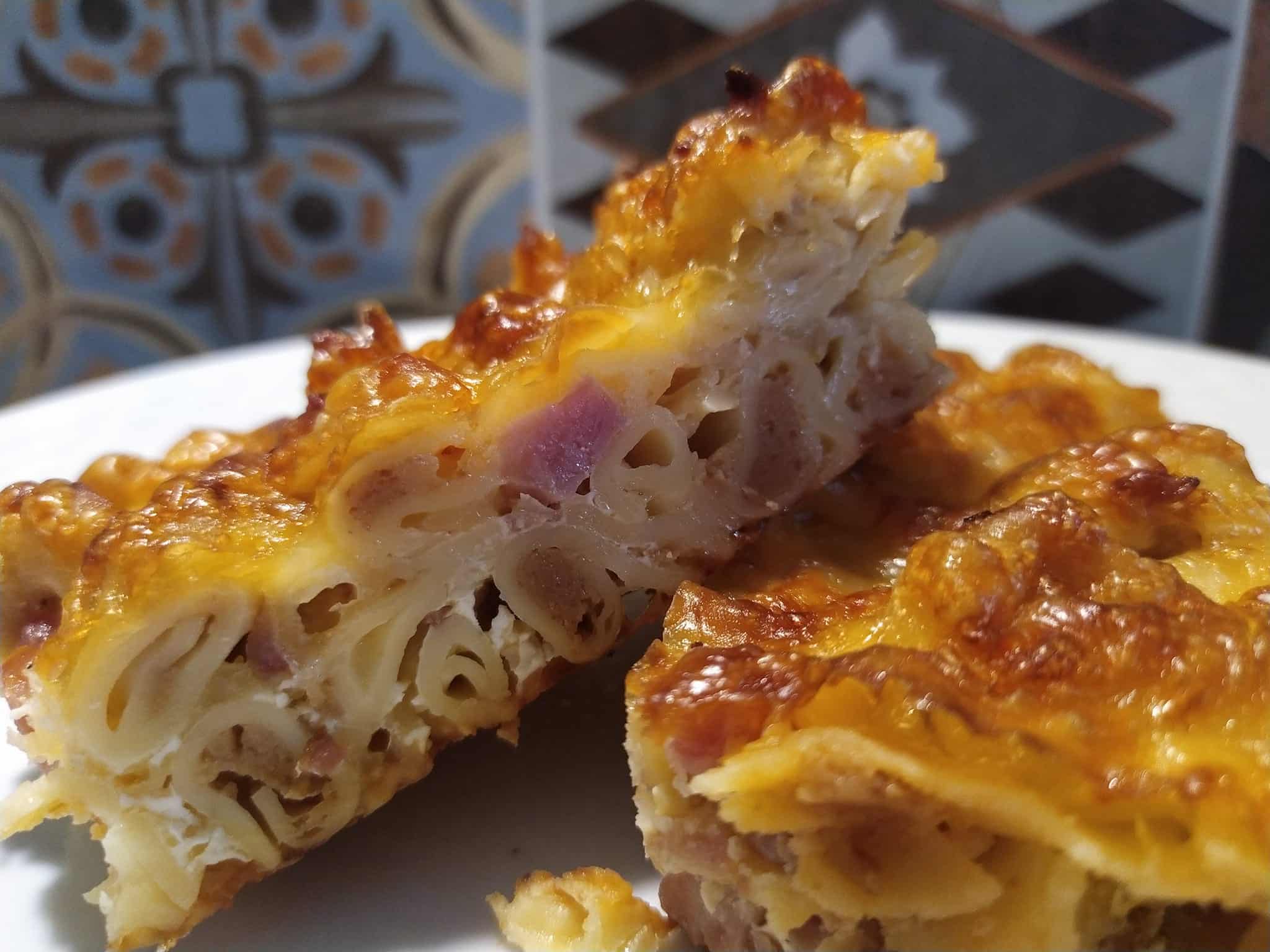 Σε ταψί ή πυρέξ ρίχνουμε εδώ κι εκεί τριμμένη γκούντα στον πάτο και αδειάζουμε το μίγμα με τα τορτελίνια το οποίο απλώνουμε (ανάλογα και το σκεύος βέβαια το πάχος είναι ένα δύο δάχτυλα … οριζόντια εννοείται). Πάνω τους ρίχνουμε την υπόλοιπη τριμμένη γκούντα και από πάνω με σχολαστικότητα να πάει παντού, τη δεύτερη κρέμα γάλακτος. Αλάτι δε βάζουμε καθόλου γιατί το φαγητό το αλατίζει ικανοποιητικά το μπέικον.