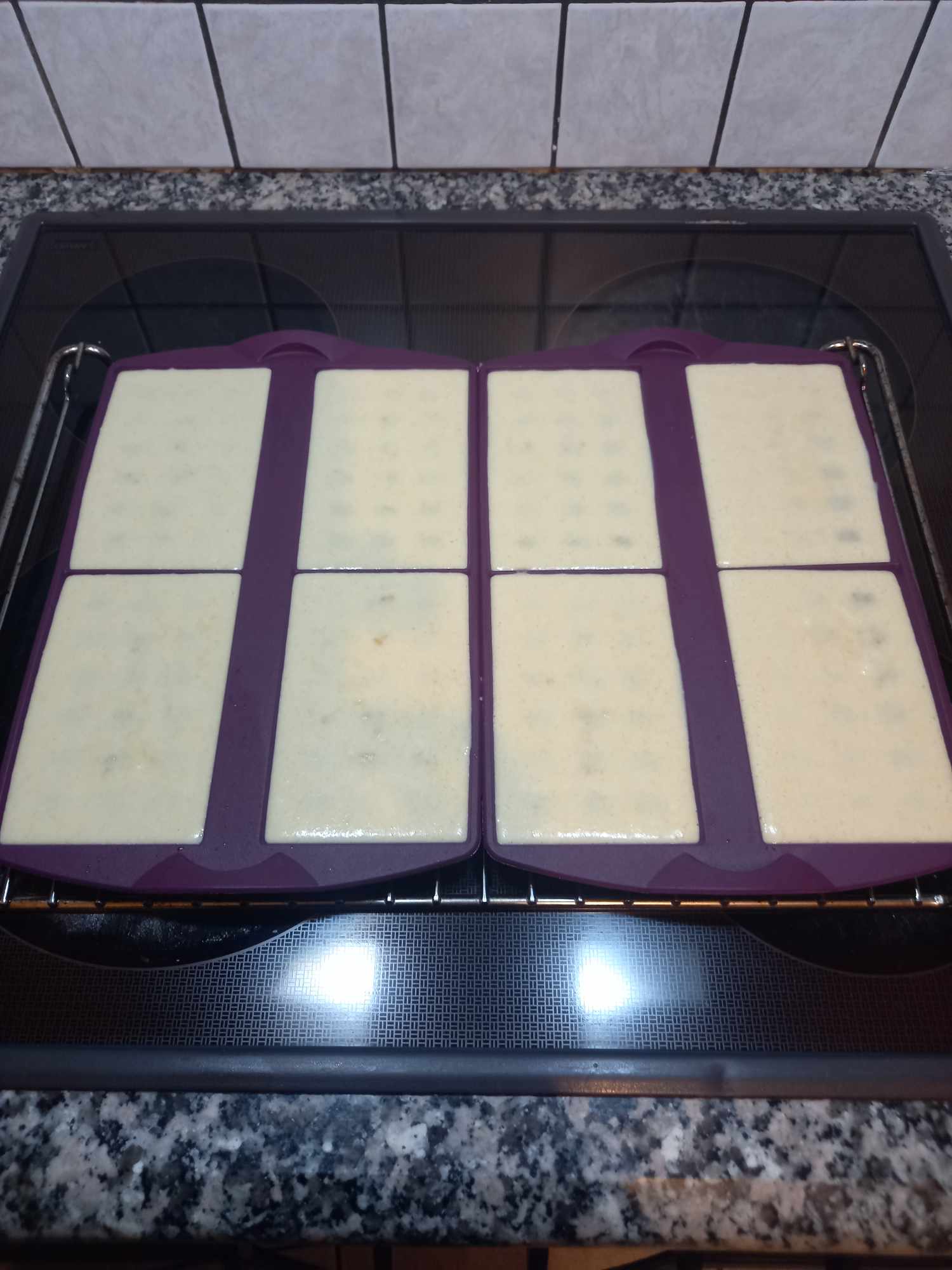 Γεμίζουμε δύο φόρμες σιλικόνης με το μείγμα