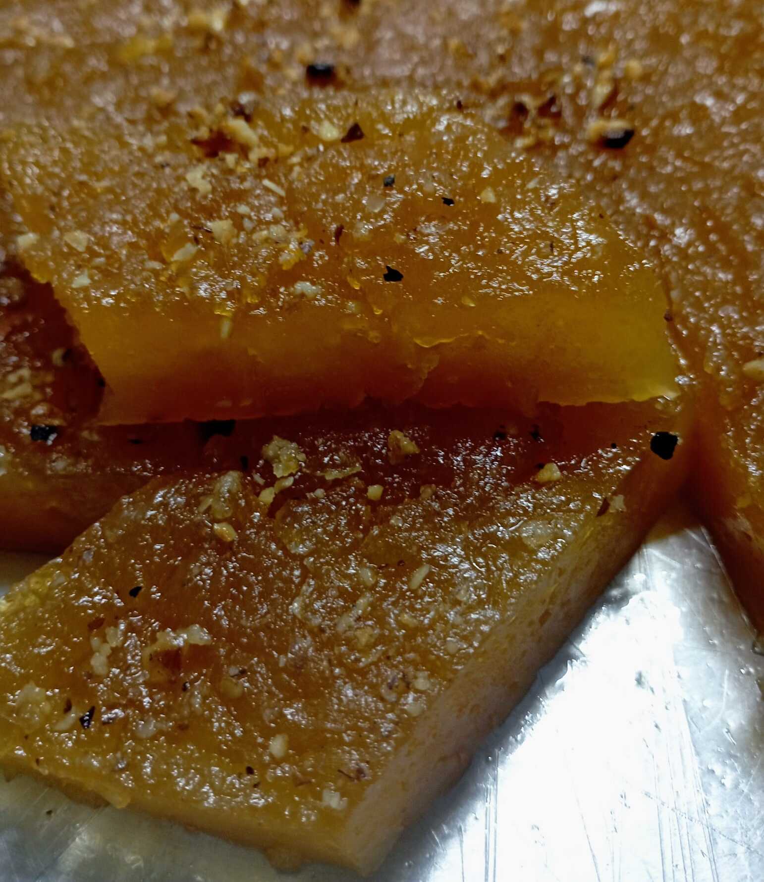 Aνακατεύω να πήξει ρίχνοντας μισό πακέτο βούτυρο. Ξεκολλάει από τα τοιχώματα της κατσαρόλας και γίνει μια ημιδιαφανής μάζα