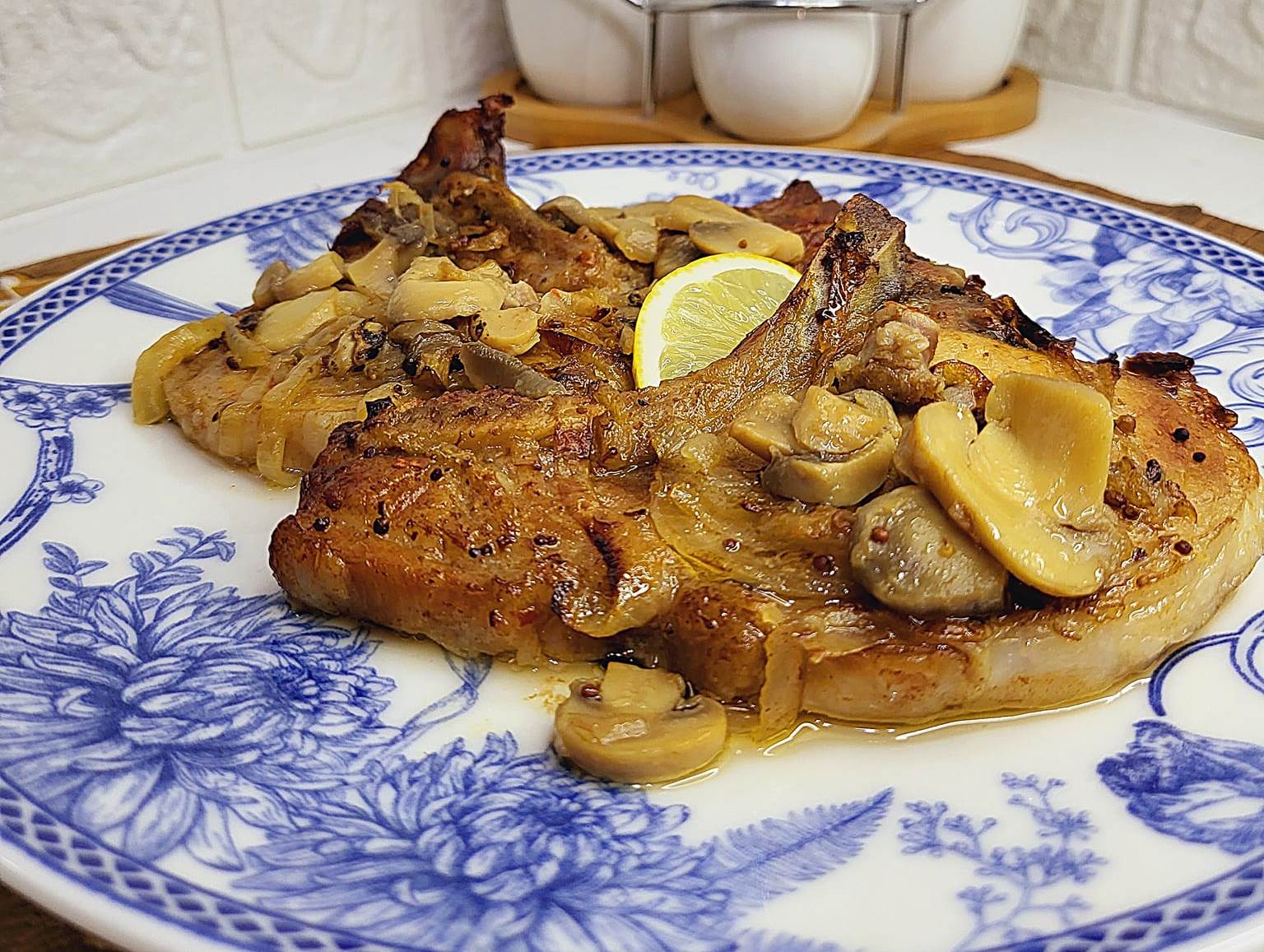 Αυτό το πιάτο είναι μια απόλυτη απόλαυση για τους λάτρεις του κρέατος. Η πλούσια γεύση των χοιρινών μπριζολών συνδυάζεται άψογα με τα σοταρισμένα μανιτάρια και κρεμμύδια, ενώ η μπύρα προσθέτει μια ιδιαίτερη πινελιά γεύσης και υγρασίας.