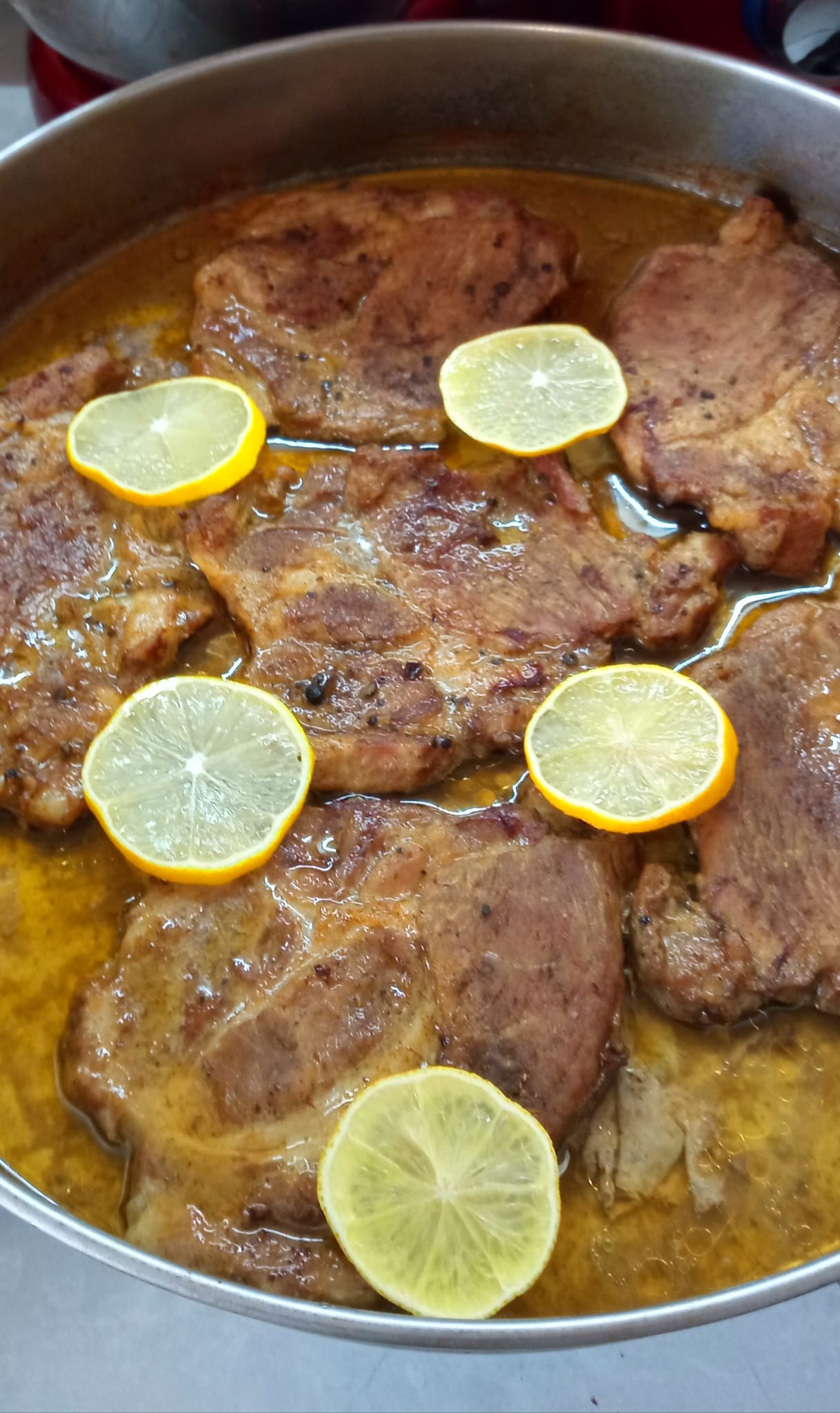 Τοποθετώ τις μπριζόλες σε ταψί με λάδι, περιχύνω με τη μαρινάδα, τύλιξα με αλουμινόχαρτο και έψησα για 1 ώρα περίπου στους
