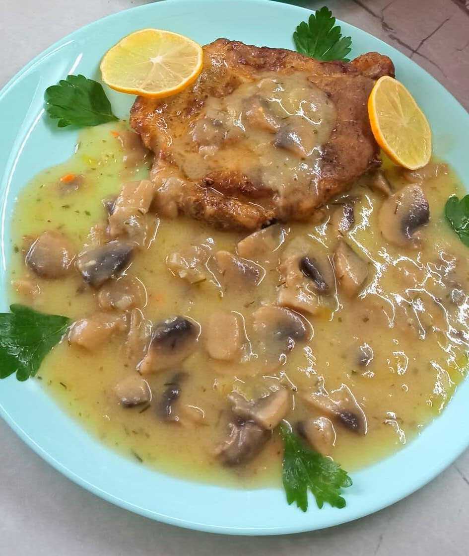 Χοιρινές μπριζόλες λαιμού με σάλτσα μανιταριών