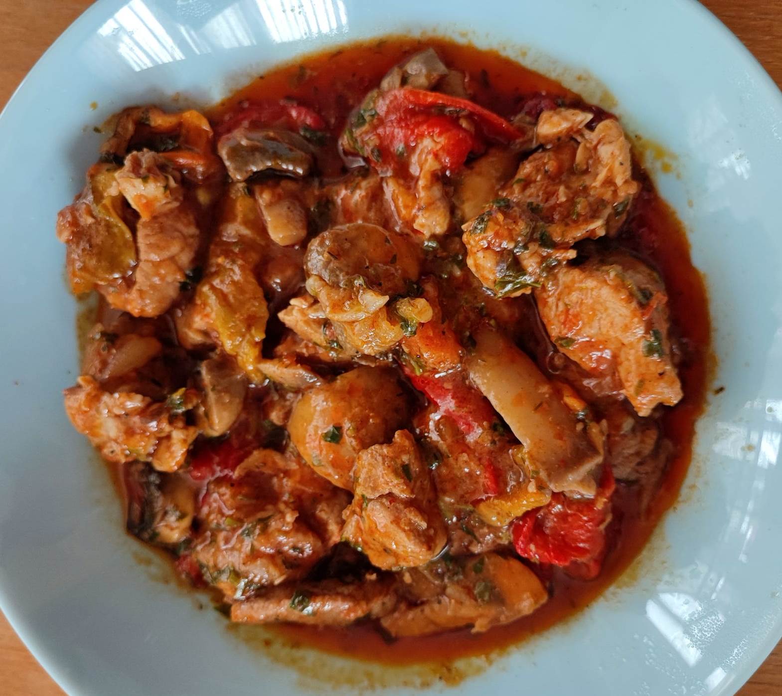 Χοιρινό κατσαρόλας με πιπεριές και μανιτάρια